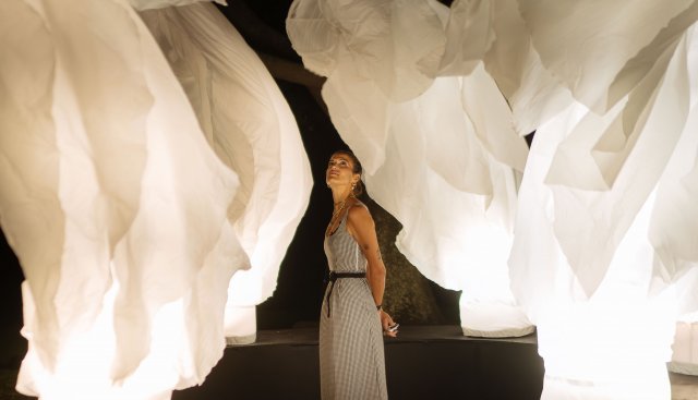 A trail of sound sculptures, neon texts, and glowing artworks