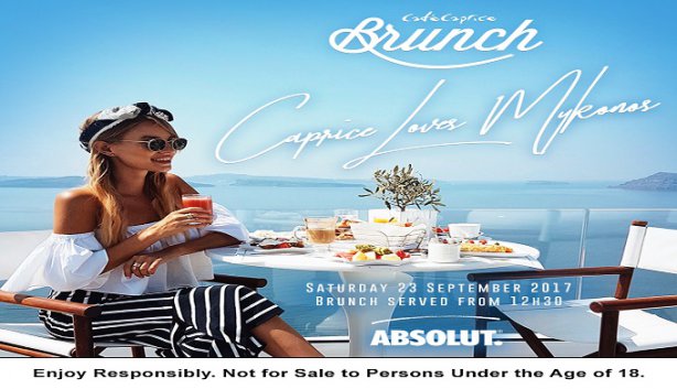 Café Caprice in Camps Bay is where you want to be on Saturday, 23 September for the next installment in their Absolut Brunch series. Arrive any time from 12:30pm for an afternoon with the intriguing theme “Caprice Loves Mykonos” – be sure to dress the part!