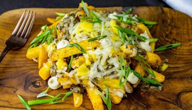 The loaded fries are just as cheesy and moreish as the original, but more satiating. Image: Bamboo Plant Power