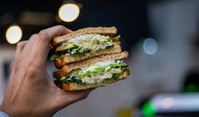 Sit-down toasties are served with a tangy Asian sesame seed slaw. Image: Bamboo Plant Power
