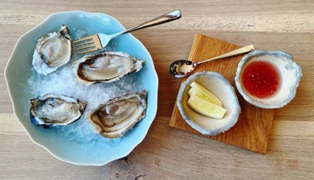 Oysters are always a delicious start to a meal. Here, they’re served simply.