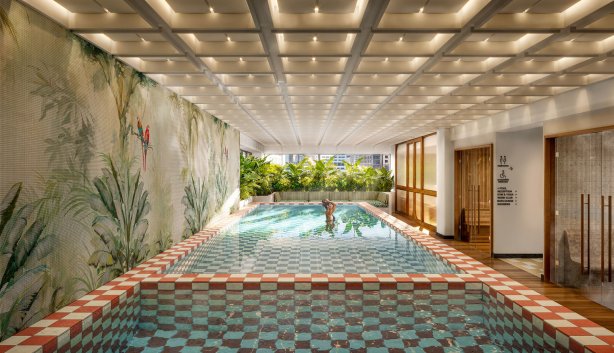 The first floor will house a members' club with an indoor heated pool and spa pool, cold plunge, gym, sauna and steam room, bar and lounge, and even communal workspaces and meeting rooms.