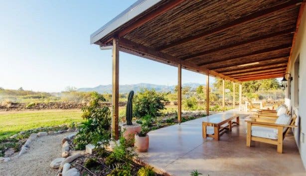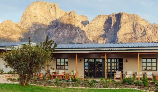 The cottages have an open-plan living area, fully equipped kitchen, and dining table. A spacious patio overlooks Drakenstein Mountain, fynbos gardens with potted succulents, and a massive herb garden, and cobblestone pathways.