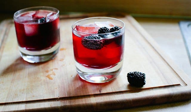Pour all the liquid ingredients into a thick tumbler half-filled with ice and stir gently. Finish by decorating it with a perfect blackberry or two.