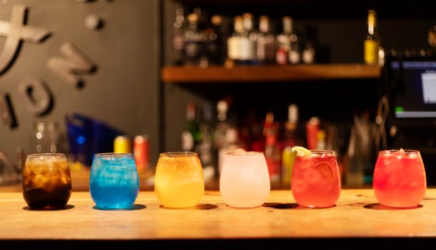 You can make your gin any shade of yellow, pink, blue, a mix of everything, or keep it clear. Image: Lara van Zyl