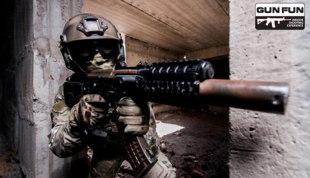 A glock pistol and AK-47 come as part of the package, where training on the correct handling and usage of each is provided. Earmuffs and protective glasses are included.