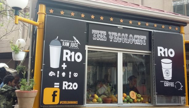 On the paved St. George’s Mall strip in Cape Town’s CBD where you can find stalls and vendors of products of all kinds, this little tuckshop manages to be at once trendy in aesthetics, healthy and superbly priced. What you can buy here is not lunch, strictly speaking, and not all of it is what you would call healthy; its food options are limited to muffins and pastries - but their all-fruit smoothies and raw juices are nutritious and filling for a smaller midday snack.