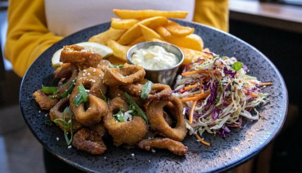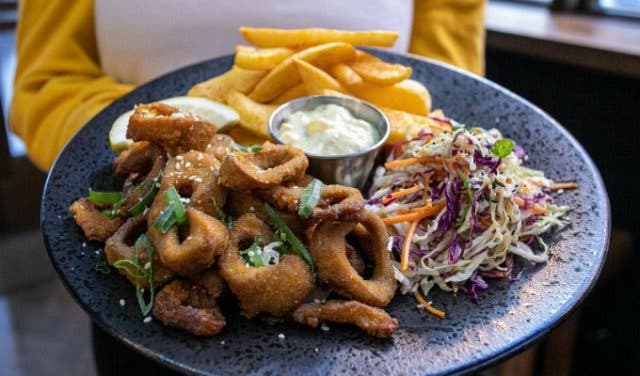 There’s impressive swaps on the menu too, like the “calamari” (crumbed king oyster mushroom rings with tartare sauce, slaw and fries) and the Drummie (four jackfruit “drumsticks” with crispy skin, spicy harissa and cauli rice).