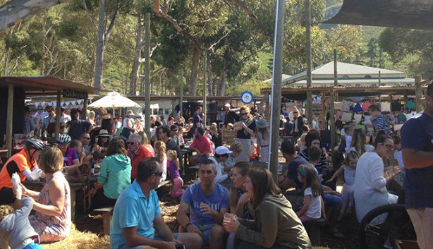 Most stalls fronts are made of wood and in between them are paths of wood chips (do wear shoes) – it’s all very neat. There’s shade-cloth covering in some areas, so you can stay out of the sun, and the breeze blows through, keeping things cool. Plus there’s always a DJ, and what’s better than an outdoor lunch with music (and good wine)?