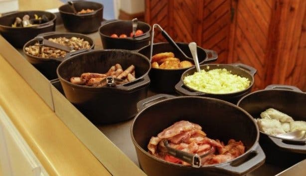 Like any top-tier hotel, you’ll be served a hearty breakfast. Options include eggs (any style), hash browns, bacon, fresh fruits, cold meats, cereals, cheeses, pastries, hot and cold beverages.