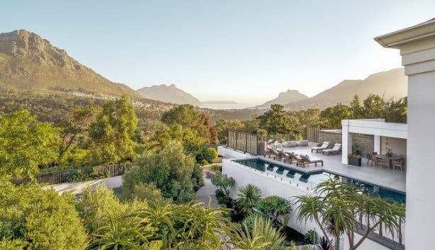 Samadhi in Hout Bay is snuggled into the side of the 12 Apostles Mountain range, with Hout Bay at its feet and the aquamarine Atlantic sea and harbour beyond. This luxurious home with a cottage and tennis court sleeps 14, has a home gym, pool, incredible views and you can holiday in it over the winter because its rate drops by R20 0000 from the high season price (high season is R45 000).