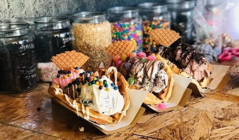 Get ice-cream with waffle fries, tacos or pops at Two Scoops of Happiness