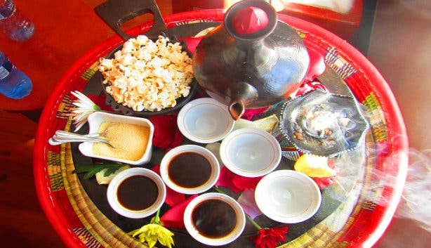 And to top this delectable dish off, Haset serves us some of the strongest coffee I’ve ever had: authentic Ethiopian buna. This cornerstone of Ethiopian culture is served with freshly popped popcorn, on a beautifully decorated tray with fresh flowers and burning Frankincense which compliments the aromas of the bitter coffee.