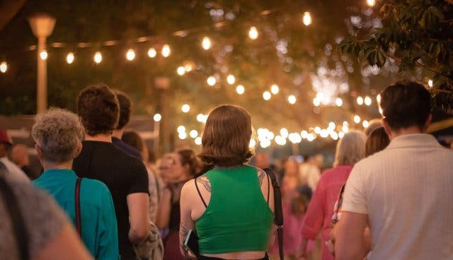 The food market is open two hours before the performance begins, so you can arrive early and have dinner at the long tables underneath twinkling strings of lights. Or, following a half-century of tradition, by picnicking on the park lawns overlooking the lake.