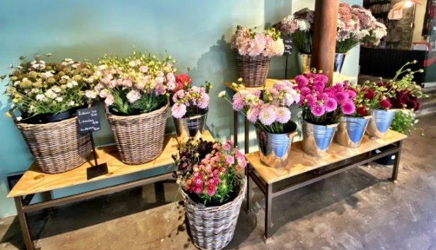 From there, continue into Local, a stylish market and deli filled with stalls selling fresh flowers, recipe books, produce, homeware, pantry items, fruit juices, ice cream, cheese and charcuterie, beer on tap, and wine by the bottle or glass.