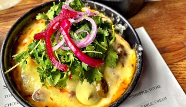 Soft tacos come with coal-roasted pork shoulder, fire-cooked beef belly, crispy local fish, or fire-roasted vegetables. The nachos are brilliant – meat or beans – and served in a piping-hot deep dish filled to the brim with melted cheese. None of this stingy platter nonsense where only the top layer of chips is worth eating.