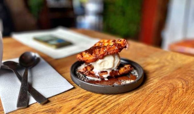 Save space for dessert, because there’s churro waffles with chocolate sauce and horchata ice cream, and charcoal-grilled corn cake with burnt orange and mescal syrup and sugared lime cream cheese.