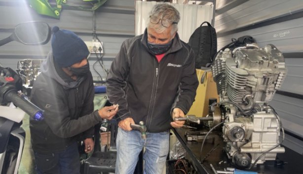 “I like to help people”, Trevor says, modestly mentioning that he’s trained several motorbike apprentices over the years as a way to help them recover from drug addiction and other challenges. He’s taken aspiring mechanics with struggles at home under his wing and taught them the tricks of the trade: from servicing a bike and accident repairs, through to complete engine rebuilds.