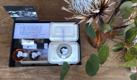 The Nobu team personally delivers each meal to your doorstep in a little black box topped with a small window, giving you a peek at what’s in store. Your delivery is kitted out with a set of chopsticks, a Nobu at Home menu and a miniature Charlotte Rhys hand sanitizer.