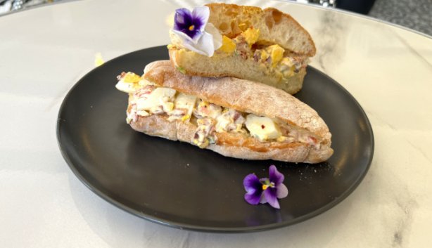 It comes with caramelised onions, cheese, and homemade BBQ sauce on ciabatta.
