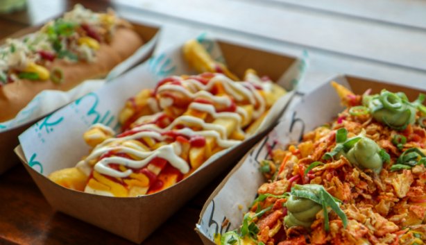 The loaded hotdogs are cheekily named after dog breeds. Image: Luca Design/Milk on the Beach