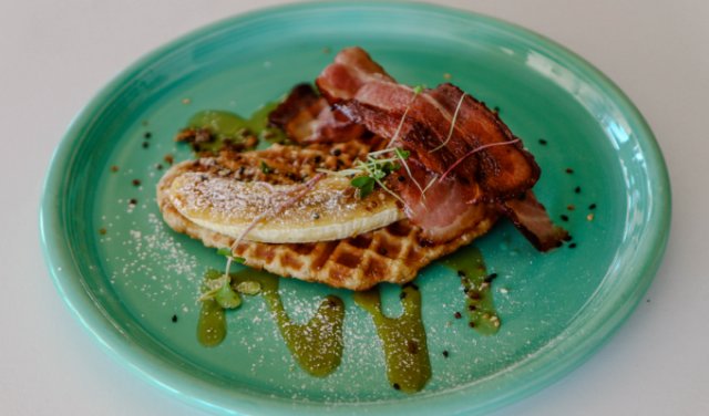 The peanut and coco smoothie bowl is a winner, and for real indulgence, order the blueberry cheesecake French toast. It’s topped with waffle churros, maple syrup, and bacon.
