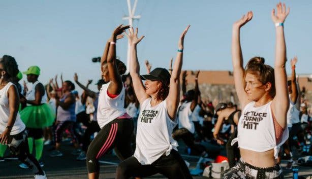 You won’t be trained by just any old so-and-so. Leading fitness influencers will be running the sessions. This includes names such as Seugnet Esterhuizen (warm up), qualified ballet teacher and pilates instructor Fiona Barford (tone and sculpt) and Ceri Hannon (closing dance session), fitness presenter and national product development manager for Virgin Active SA.