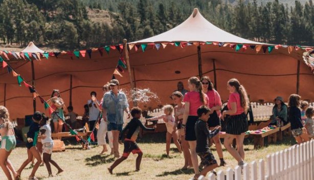 uThando Town sits at the centre of the village, surrounded by the Roller Rink, Yoasis, Vitality Village, and Good Vibrations. You can glamp in safari tents, teepees, and deluxe domes, BYO camping, or buy vehicle camping passes for those wanting to bring their own setup.
