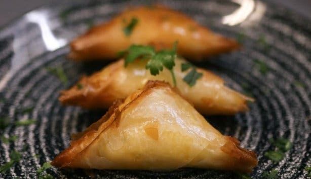 Spanakopita triangles are a favourite at Santorini. Image: Santorini