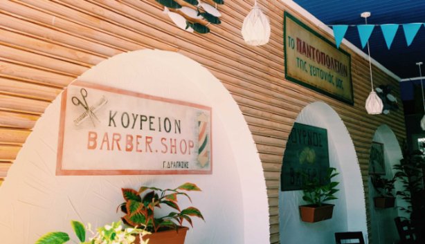The painted streets signs on the wall depict the quirky streets of Greece. Image: Sarah Jarvis