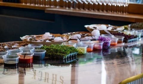 Enjoy your oyster and admire the luxury cars. Image: Shuck + Scoop