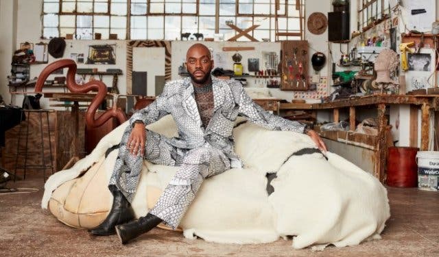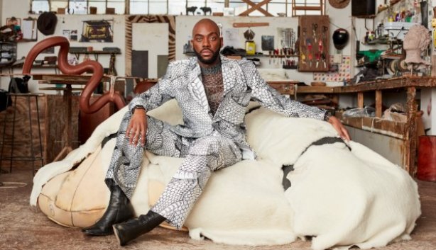 Rich Mnisi relaxes on one of his creations. Image: Southern Guild / Ricardo Simal.