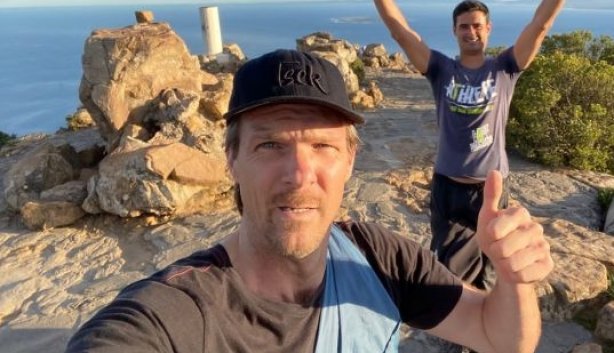 Neil (right) with Marcus (left) on an early morning hike up Lions Head. Image: Marcus Zandhuis