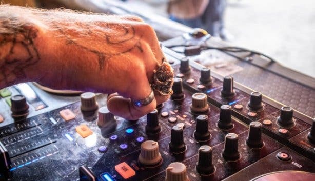 The DJ at The Tropical Thrift Fest at Trenchtown sets the mood with good music and good vibes. Image: Zack Dylan Morris and Matthew Ornellas.