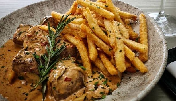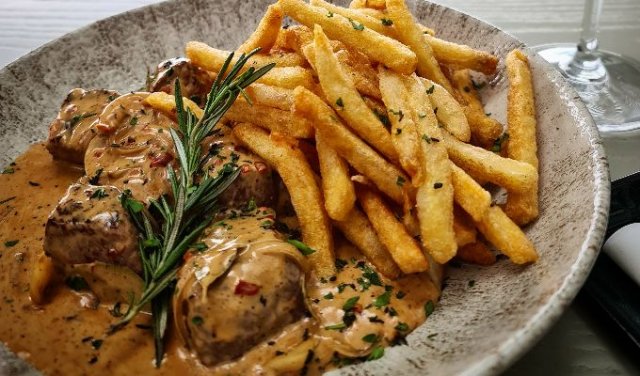 The eight-hour slow-braised oxtail is a crowd favourite. It is served with dombolo (steamed dumplings) and butter beans, in a rich, hearty tomato and red wine gravy. Also worth trying is the loaded boerie roll – farm style boerewors on a buttery milk bun, with smoky chipotle chakalaka, jalapeño pickles, crispy onions and fresh coriander. The creamy butter curry is a flavour-bomb with aromatic spices in a yoghurt sauce, with your choice of tender chicken fillet or Mozambican prawns. The herbivore burger, made from 100% plant-based ingredients, comes with a 200g veggie patty, with vegan condiments and trimmings, served on a soft whole wheat bun.