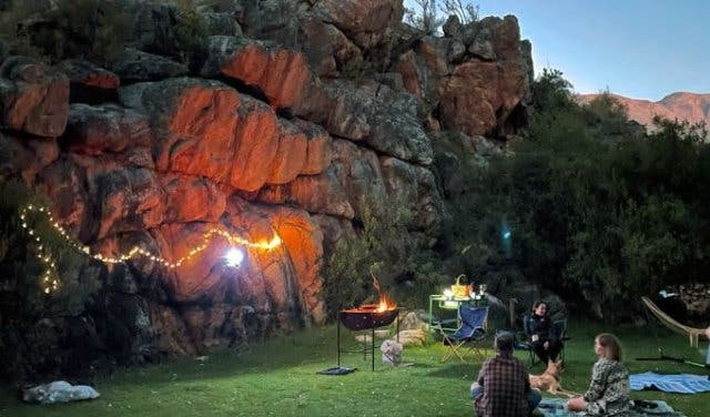 On the back of an apple farm in Ceres, you'll find a private and exclusive campsite, Apple Camp by The Riverstone Portfolio. With a covered braai area and firepit, you can relax and braai while kids splash around in the river (pets can come, too). The campsite can be booked out to one group at a time for up to 20 people.