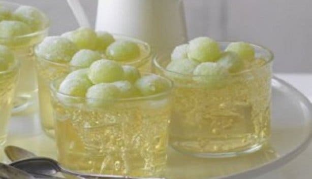 Now comes the exciting part; uncork the champagne! Measure out 275ml and pour it into the jelly. Stir it once or twice to blend everything together, then using a ladle gently scoop it into serving glasses (gently means conserving as many bubbles as possible). Cover the glasses with clingwrap and chill the jellies for four hours, until they are deliciously soft set. They should be firm enough to support the syllabub but not rubbery.
