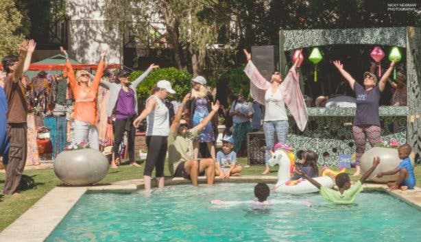 Kids and adults enjoy cooling off in the Riverside Estate pool. Image: Shanti Wellness Festival