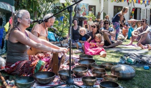 Swing dancing, Qi Gong (Chinese movement meditation), partner yoga and acro yoga (a partner-based practice that incorporates elements of acrobatics), crystal sound bowl journeys, pilates, secret sunrise dance, art classes, comedy, mantra singing, star gazing… It's hard to imagine anyone not finding their fit.